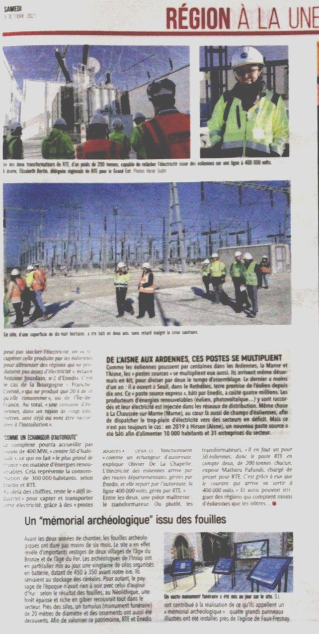 copie du journal l’UNION du 9 octobre, un article édifiant illustrant très bien l’invasion éolienne qui sévit dans la Marne